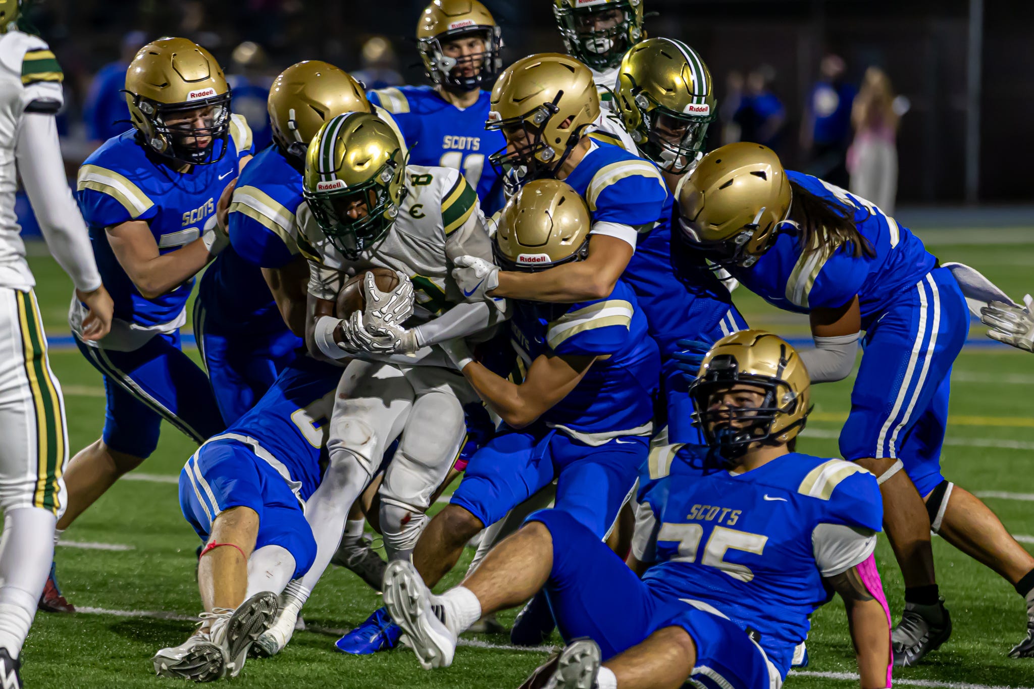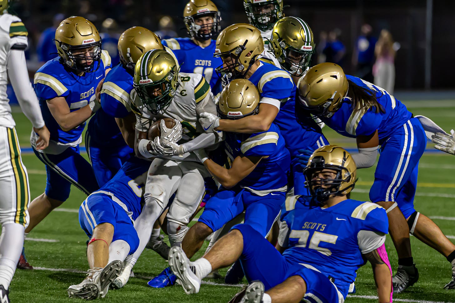 And the Hilanders remember, too. They have memories like elephants after all. But on this day the Scots were playing for the heart of the community, as opposed to the chips on their shoulder. That’s because the family of former Kelso head coach Ed Laulainen was on hand acting as honorary captains for the game.